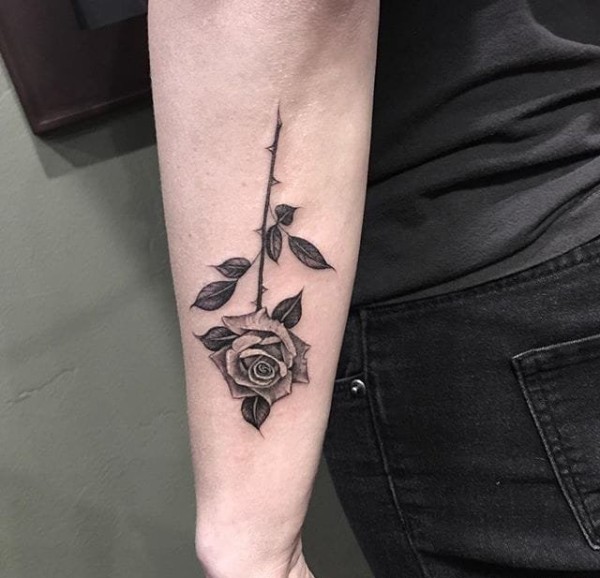 欧美玫瑰纹身 男生手臂上花朵纹身图片
