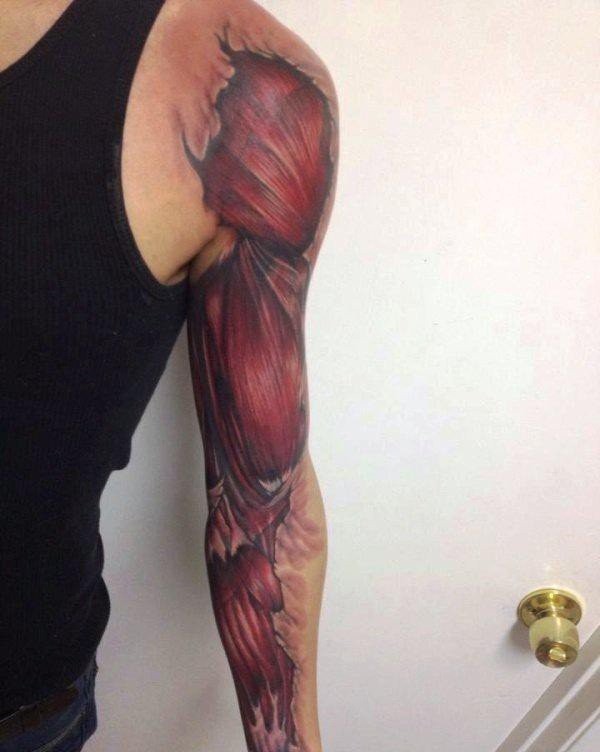 男性血腥的肌肉外露纹身图案