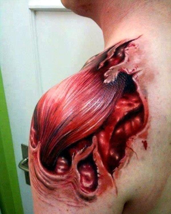 男性血腥的肌肉外露纹身图案