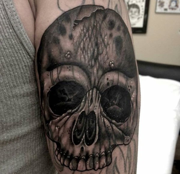 手臂黑灰色骷髅头纹身图片