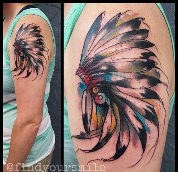 10款漂亮的水彩印第安风格羽毛头饰纹身图案
