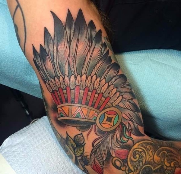 10款漂亮的水彩印第安风格羽毛头饰纹身图案