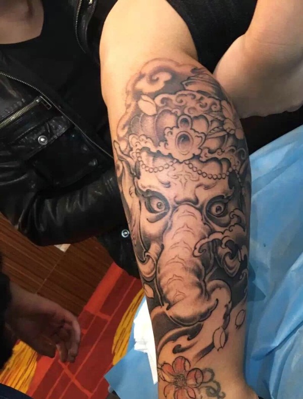 手臂黑灰象神_一组12张手臂上的黑灰象神纹身图案作品欣赏