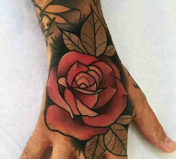 40款满手背玫瑰花纹身图案