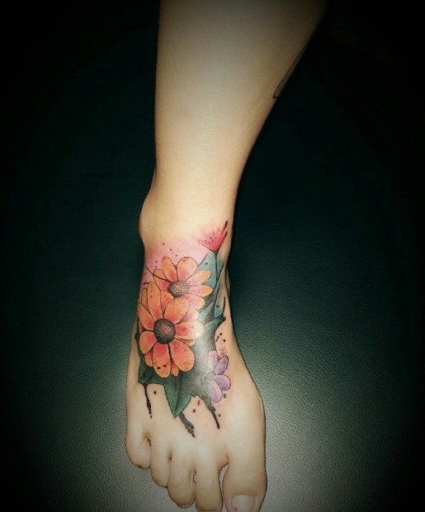 女生脚踝向日葵纹身_脚部纹身图案大全_纹身图吧