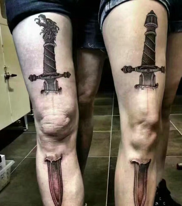 花腿纹身--一组大黑腿纹身图案作品欣赏