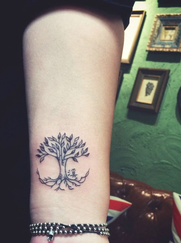 手臂时尚小树纹身图案清新自然