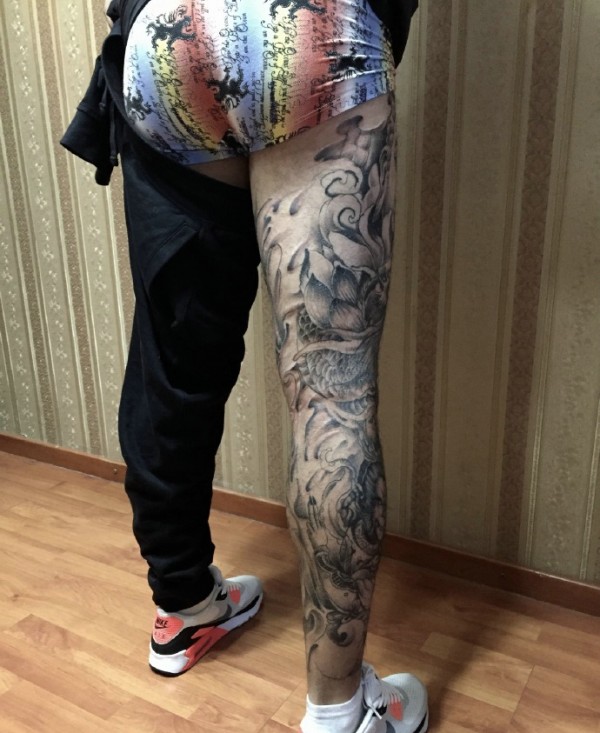 传统花腿纹身--18张传统风格的大花腿纹身图案作品