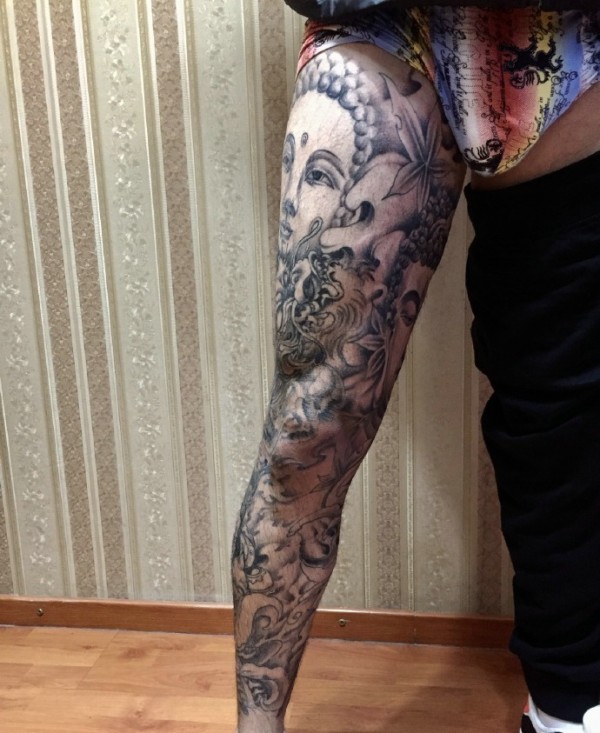 传统花腿纹身--18张传统风格的大花腿纹身图案作品