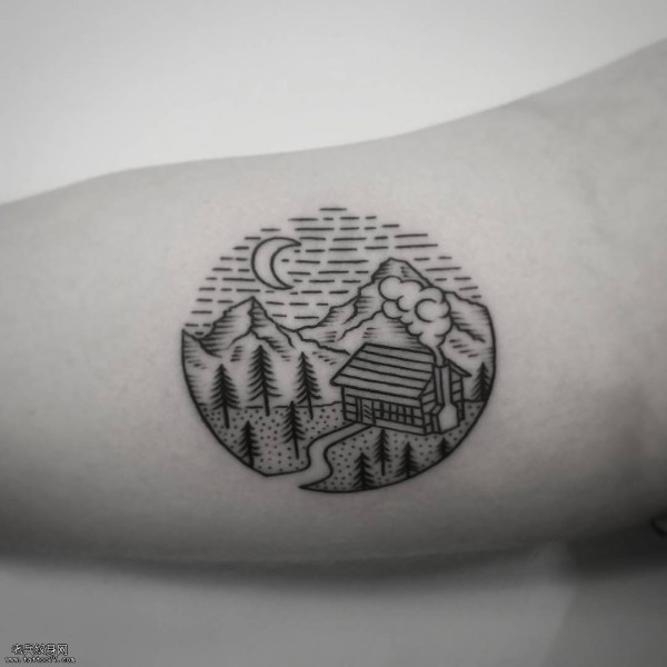 大臂山水纹身图案
