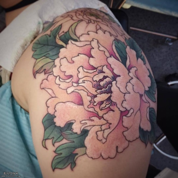 女生肩花纹身_15张女性双肩对称的肩花纹身图案作品图片