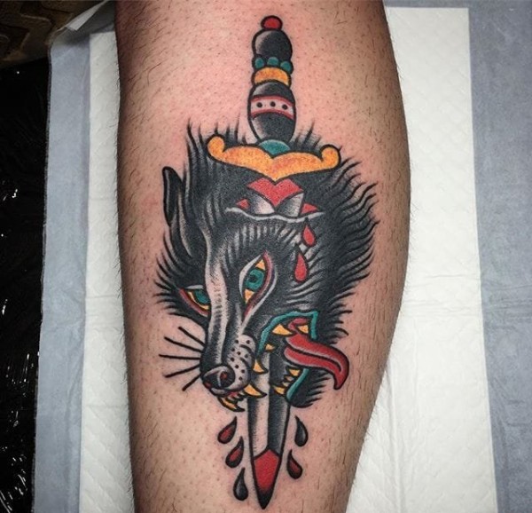 传统风格凶恶的动物与匕首纹身图案来自琼斯