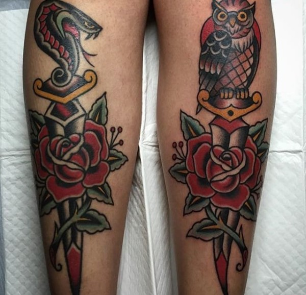 传统风格凶恶的动物与匕首纹身图案来自琼斯