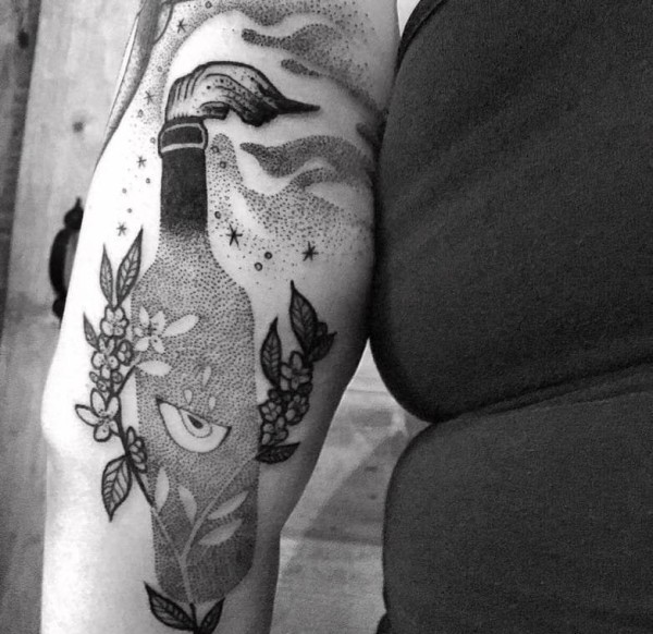 男人大臂黑白彼岸花骷髅_黑白纹身图案大全_纹身图吧