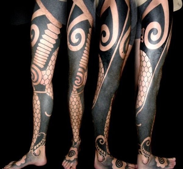 花腿纹身--一组大黑腿纹身图案作品欣赏