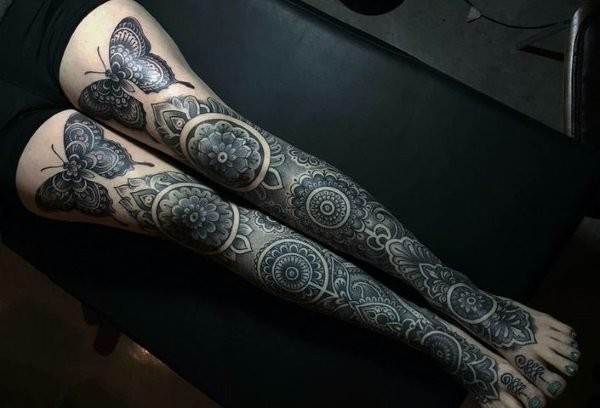 传统花腿纹身--18张传统风格的大花腿纹身图案作品