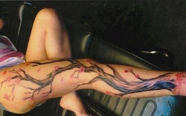 传统花腿纹身--18张传统风格的大花腿纹身图案作品