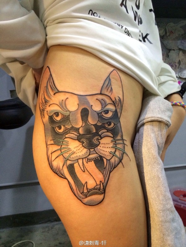 传统花腿纹身--18张传统风格的大花腿纹身图案作品