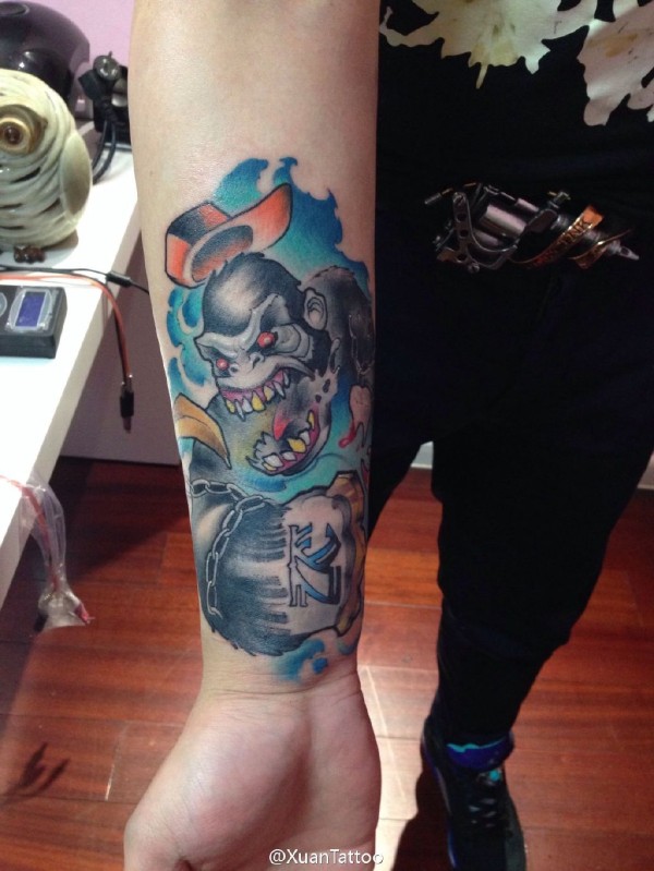 复古卡通红唇美女手臂纹身_卡通纹身图案大全_纹身图吧