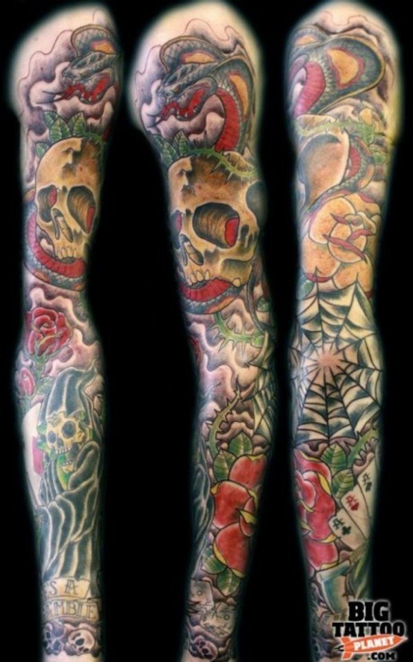 school花臂纹身--一组漂亮的school风格的花臂纹身图案作品