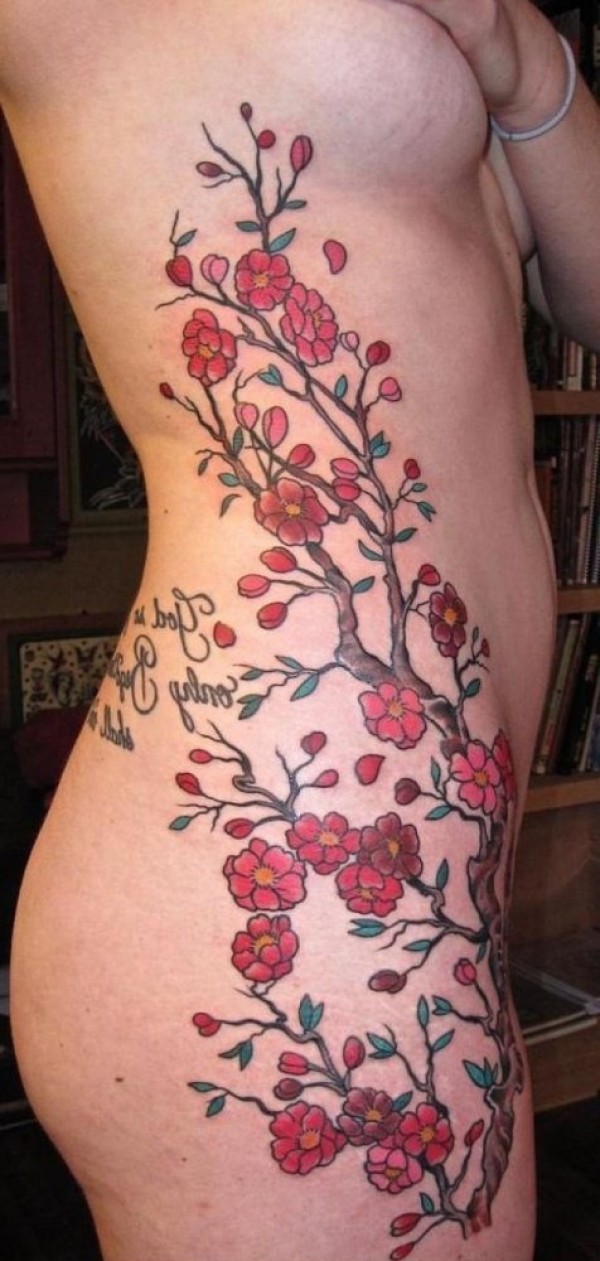 女性喜爱的美丽的樱花纹身图案