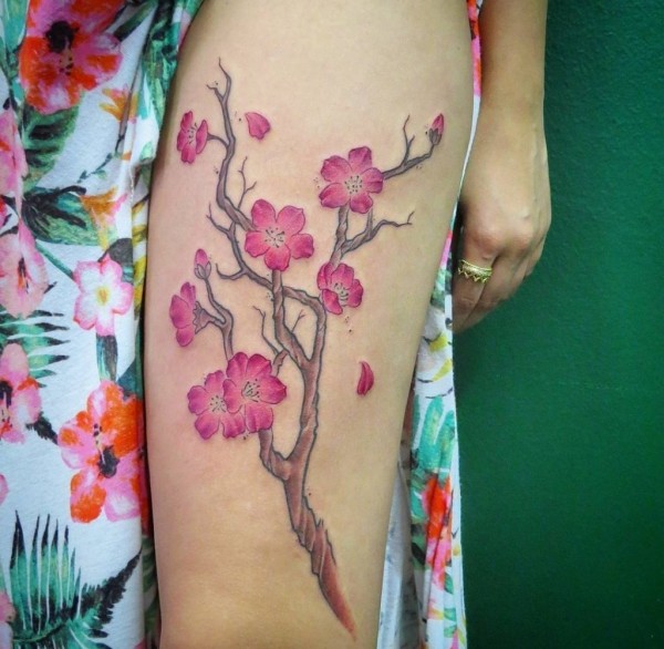 女性喜爱的美丽的樱花纹身图案