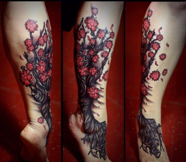 清新花朵腿部纹身图案图片_植物纹身图案大全_纹身图吧