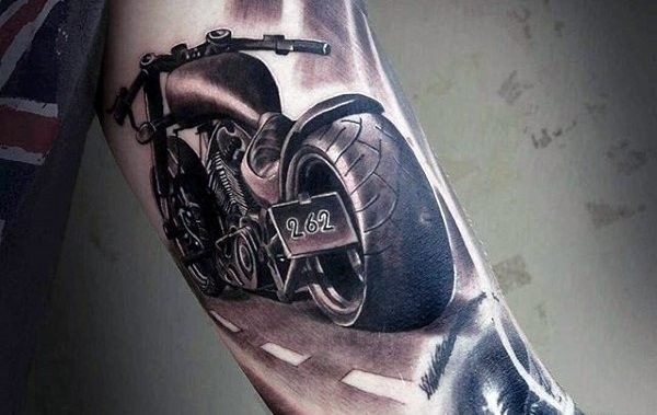 摩托车爱好者们身上帅气的摩托车纹身图案