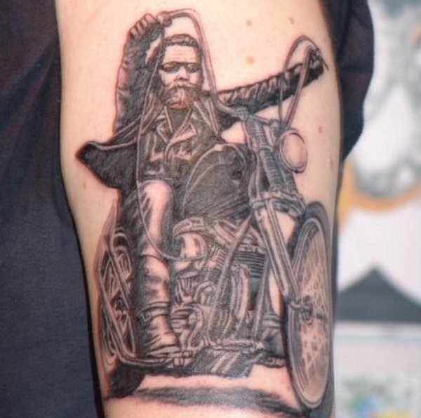 摩托车爱好者们身上帅气的摩托车纹身图案