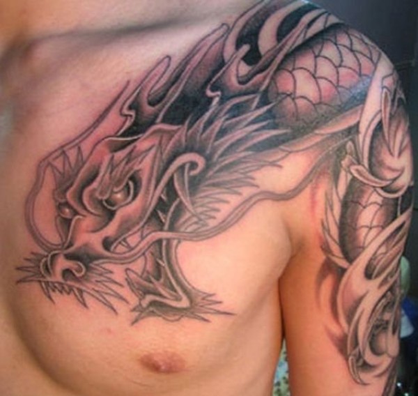 龙纹身手稿_一组老传统黑灰龙手稿纹身图案