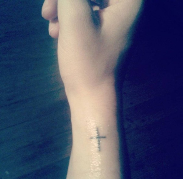 手腕上的简单风格十字架纹身图案