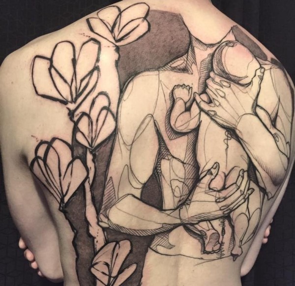 极简线条纹身 多款极简线条纹身素描欧美抽象纹身图片