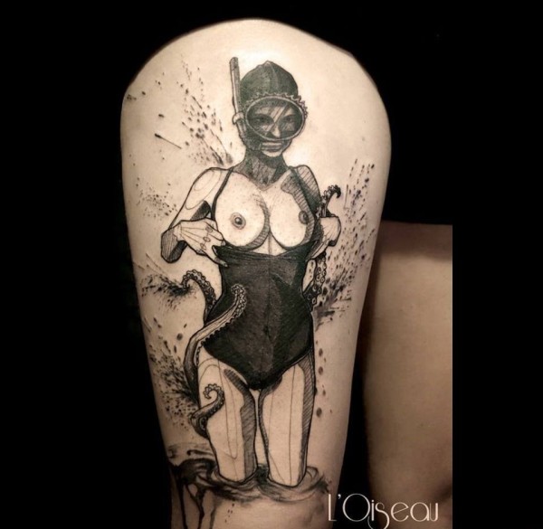 极简线条纹身 多款极简线条纹身素描欧美抽象纹身图片