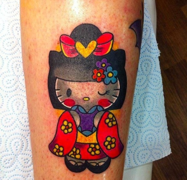 彩色的卡通动物纹身小马驹和凯蒂猫纹身图案