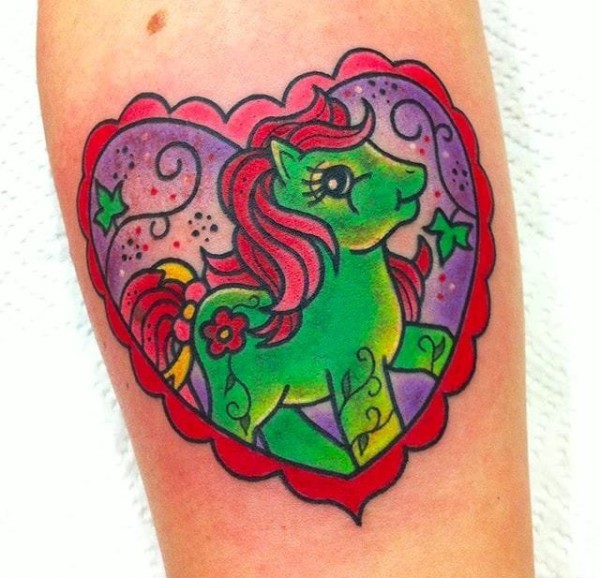 彩色的卡通动物纹身小马驹和凯蒂猫纹身图案