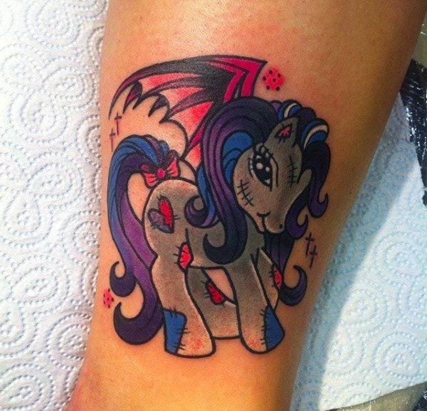 彩色的卡通动物纹身小马驹和凯蒂猫纹身图案