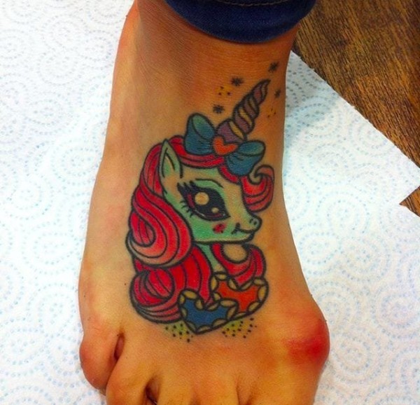 彩色的卡通动物纹身小马驹和凯蒂猫纹身图案