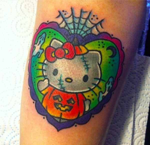 彩色的卡通动物纹身小马驹和凯蒂猫纹身图案
