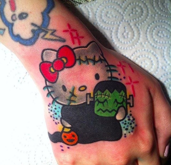彩色的卡通动物纹身小马驹和凯蒂猫纹身图案