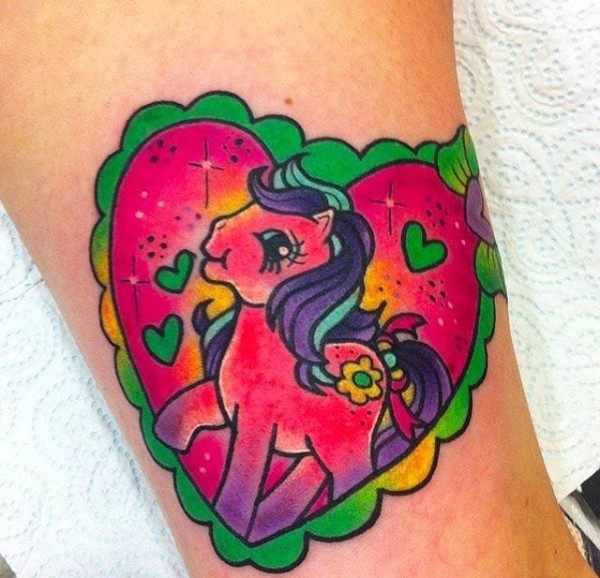 彩色的卡通动物纹身小马驹和凯蒂猫纹身图案