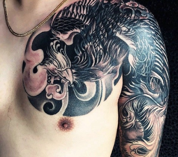超级炫酷的半甲凤凰纹身图案