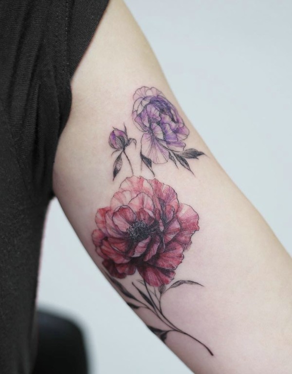 欧美玫瑰纹身 男生手臂上花朵纹身图片