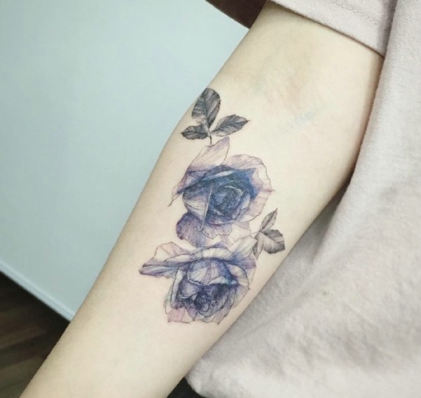 欧美玫瑰纹身 男生手臂上花朵纹身图片