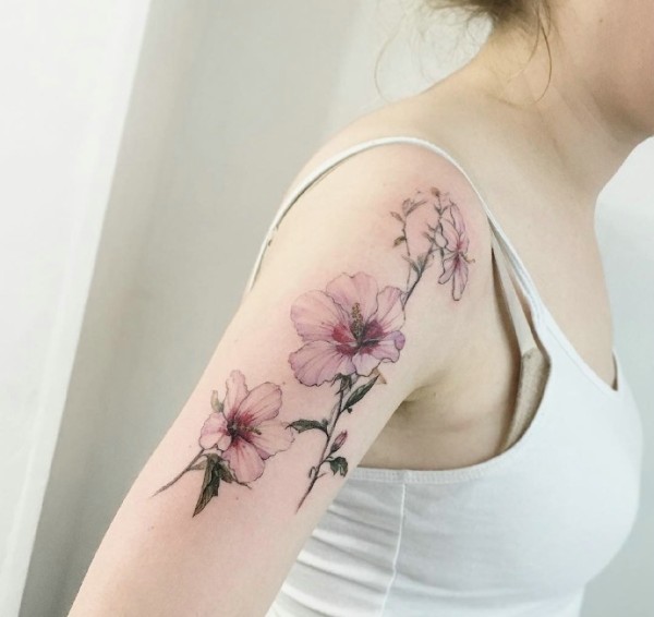 后肩唯美花藤英文图案图片_植物纹身图案大全_纹身图吧