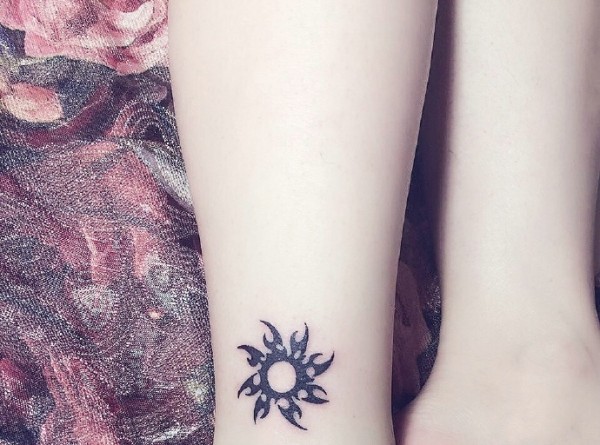 裸脚上的另类小太阳纹身图案