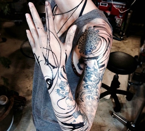25款男性黑色手臂线条纹身点刺技巧半甲纹身图案