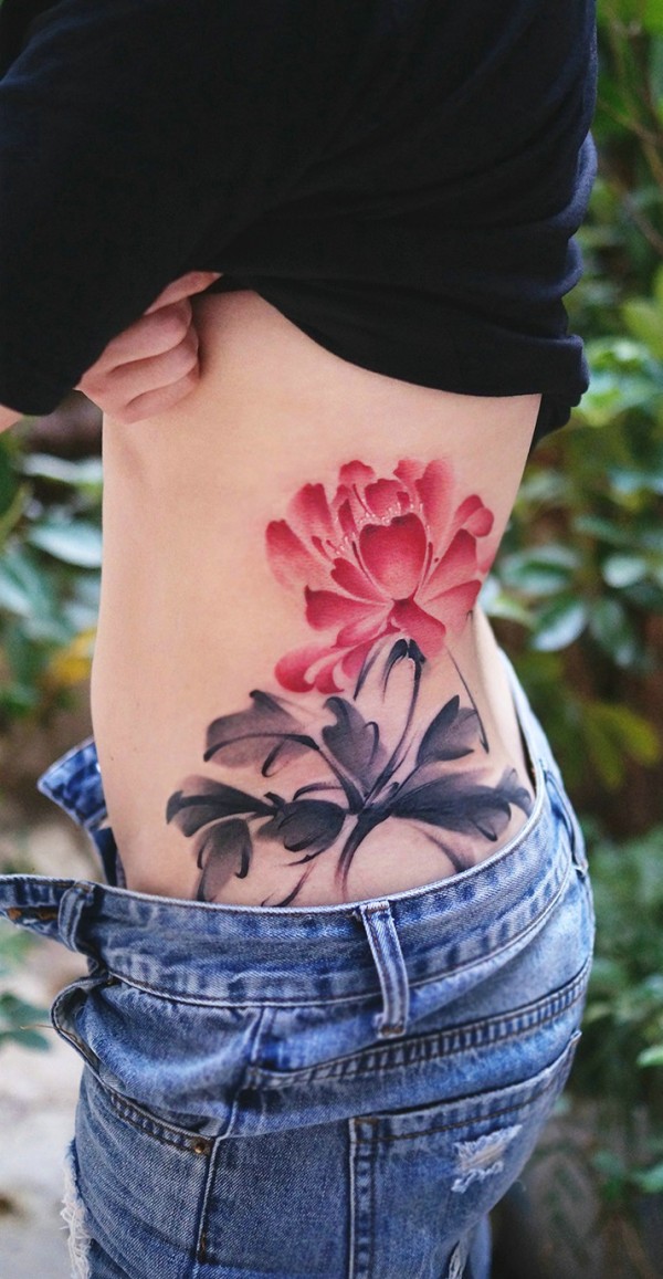 女性腰部莲花花纹刺青_腰部纹身图案大全_纹身图吧