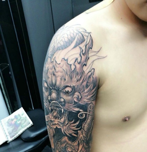 霸气的手臂经典邪龙纹身图案
