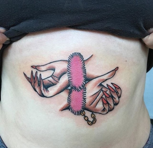 恋人一双漂亮的戴着手铐的祈祷之手纹身图案