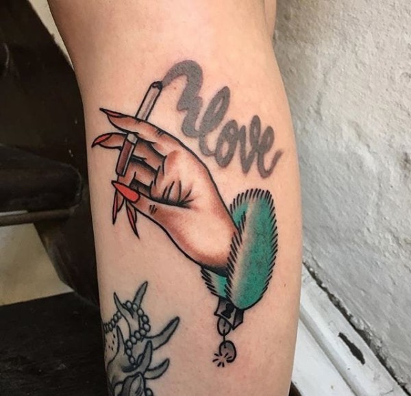 恋人一双漂亮的戴着手铐的祈祷之手纹身图案